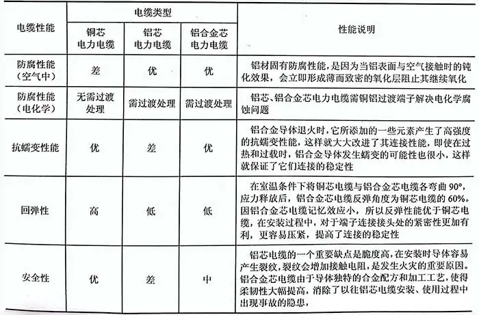 銅芯、鋁芯及鋁合金芯電線電纜在鋪設(shè)運用問題的特性如圖所示